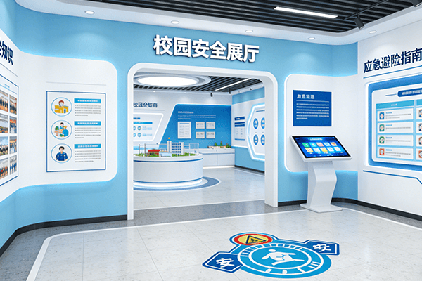 校园安全展厅聚焦校园安全,通过情景模拟与实操互动,普及防欺凌、灾害逃生及急救知识,筑牢校园防线。